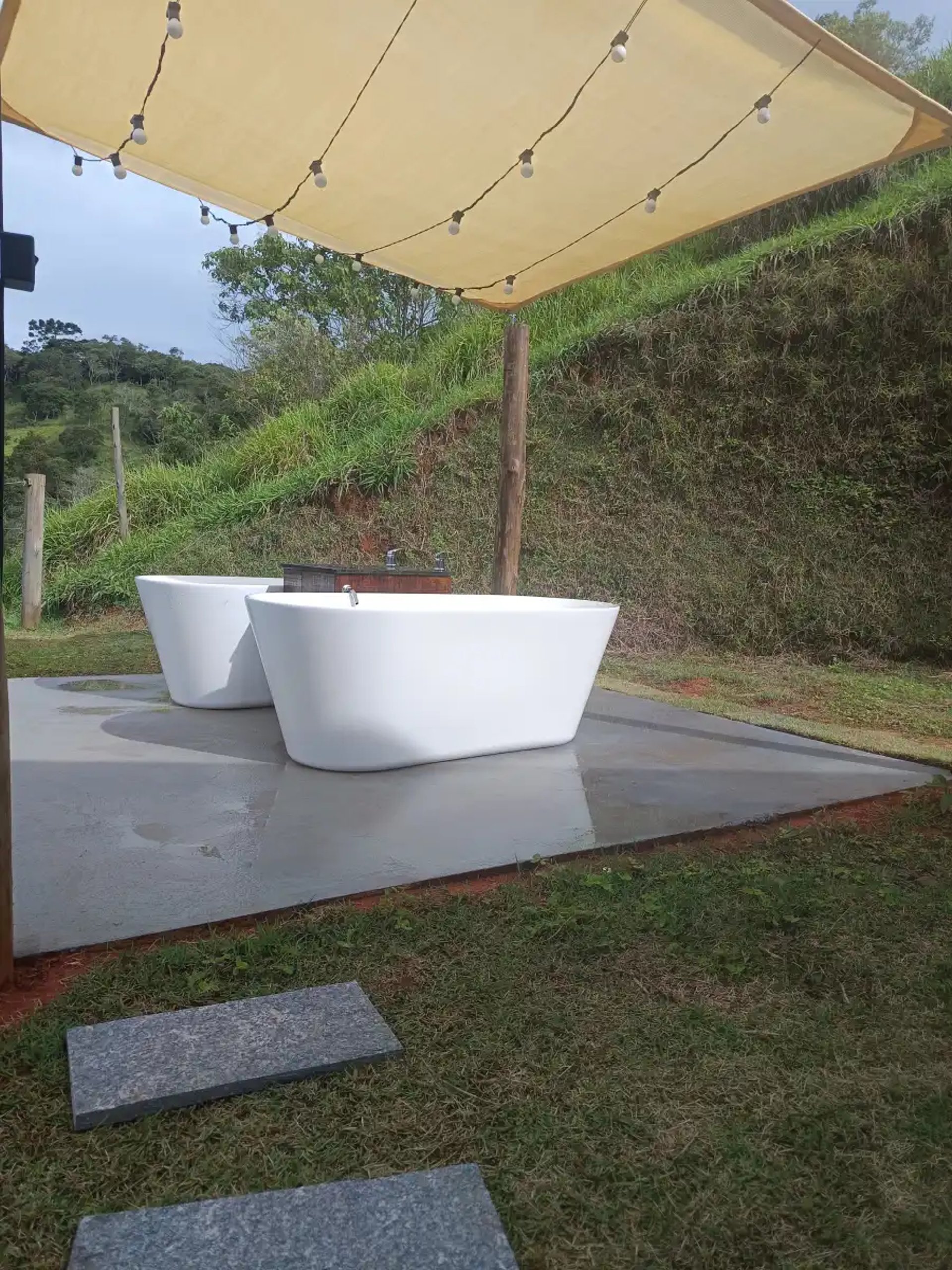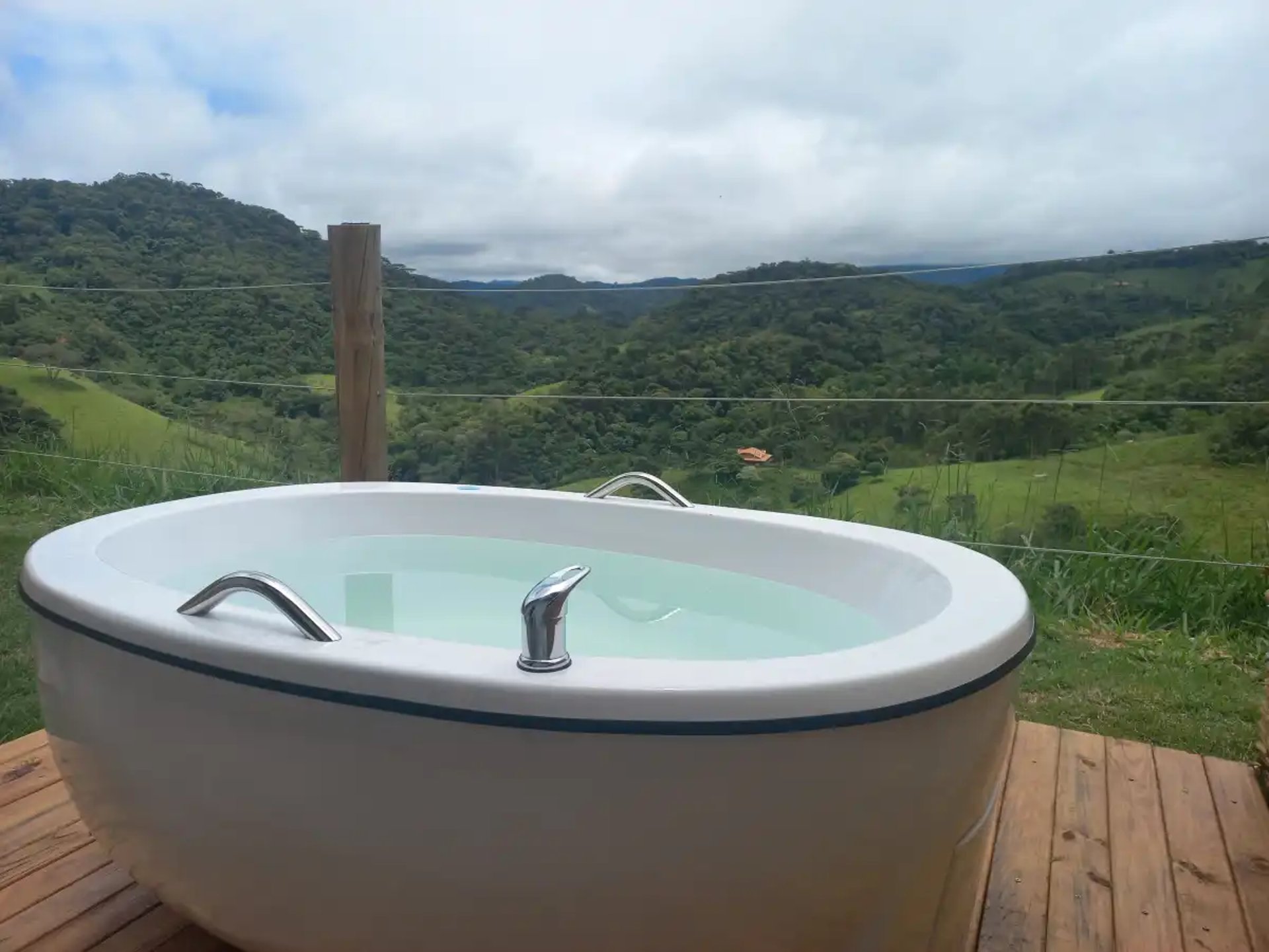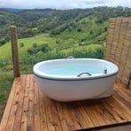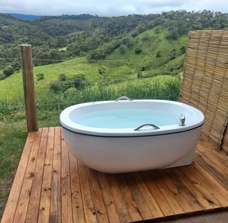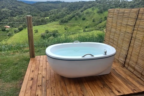 Você pode aproveitar um banho bem quentinho no nosso chuveiro elétrico e depois descansar na cama box padrão hoteleiro, ou pode abrir a varanda privativa e entrar na sua banheira de imersão aquecida e desfrutar da vista da Montanha (Pedra do Baú), se for a noite não tem problema, basta ligar o varal de luzes.